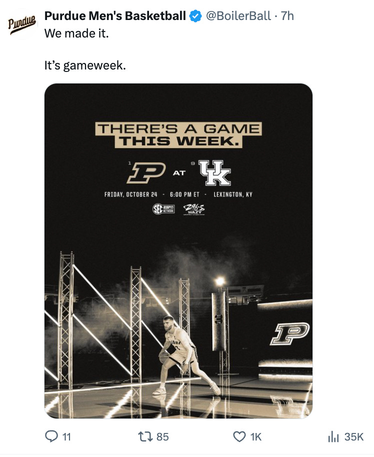 Thanks for support for this edition from Purdue for Life Foundation, presenting a pep rally followed by an exclusive game-watch party for the Purdue men’s basketball away exhibition game against Kentucky Oct. 24 at Mackey Arena. Claim your spot at https://www.purdue.edu/campaign/rsvp/.