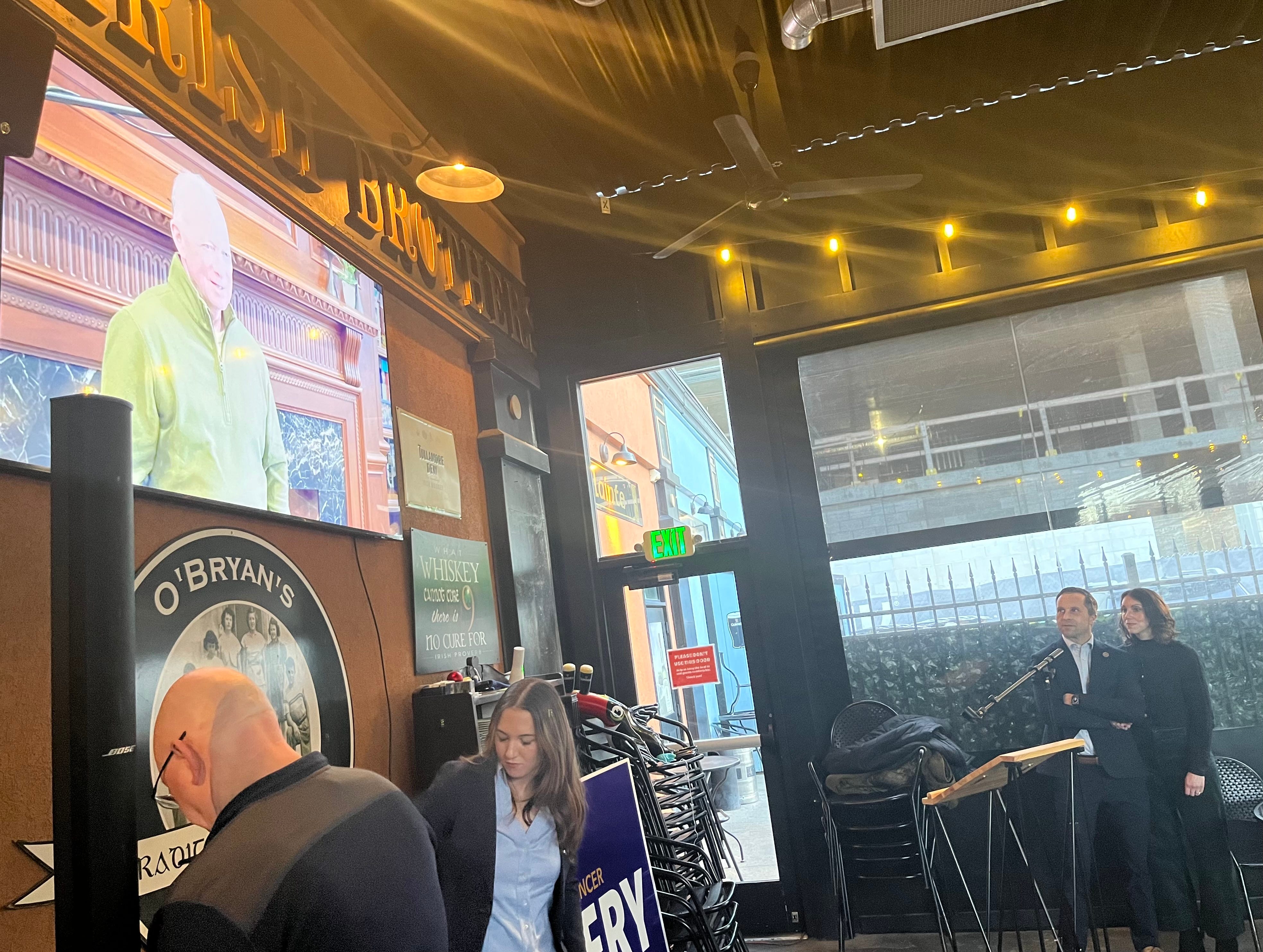 “We live in a time when, sadly, public officials acting out of principle and acting with great courage are sometimes hard to find,” Daniels said via a message delivered by video at a campaign launch at 9 Irish Brothers in West Lafayette when scheduling issues prevented something live. “And in some recent controversies in our state, Spencer Deery has revealed himself to be a person of immense principle and of equivalent courage.”