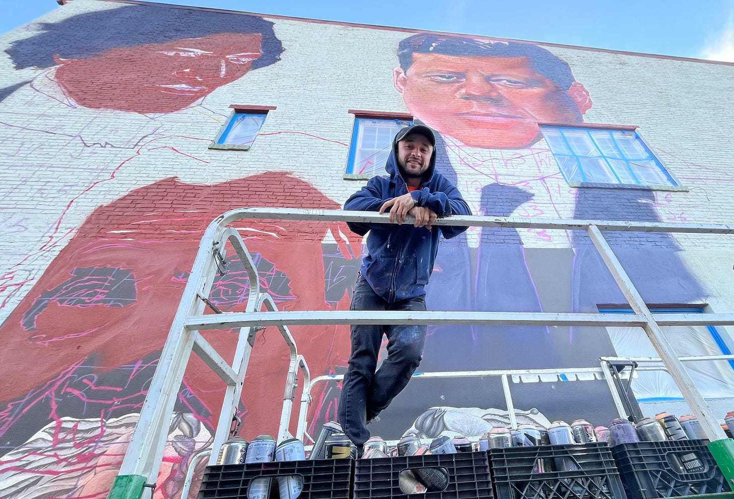 Curtis started roughing in a trio of portraits – a grouping of Frederick Douglass, John F. Kennedy and Abraham Lincoln, chosen to represent famous visits in the city’s history – on Wednesday as part of a project meant to mark this year’s Lafayette Bicentennial and next year’s 250th birthday of the United States.