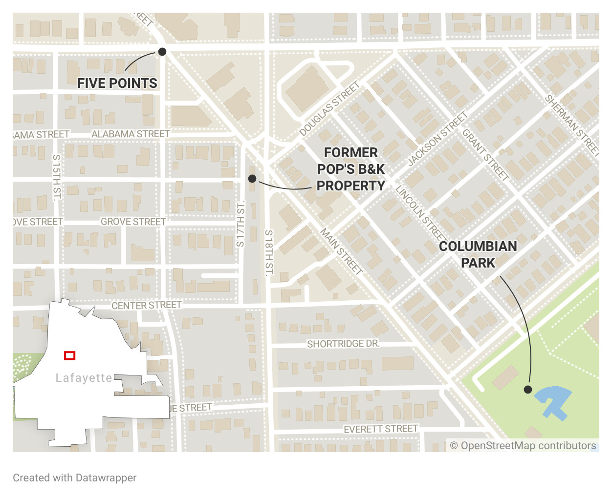 In 2018, the city wrapped up a $161,000 study of Five Points, a section of Lafayette that takes in parts of four neighborhoods – Perrin, Columbian Park, Valley Center and St. Mary – and includes a busy triangle of intersections bounded by Main, 18th and South streets. The concept was to show what might be done to make Five Points – which is four blocks up the hill from downtown Lafayette and about four blocks from Columbian Park in the other direction – more of a destination for development.