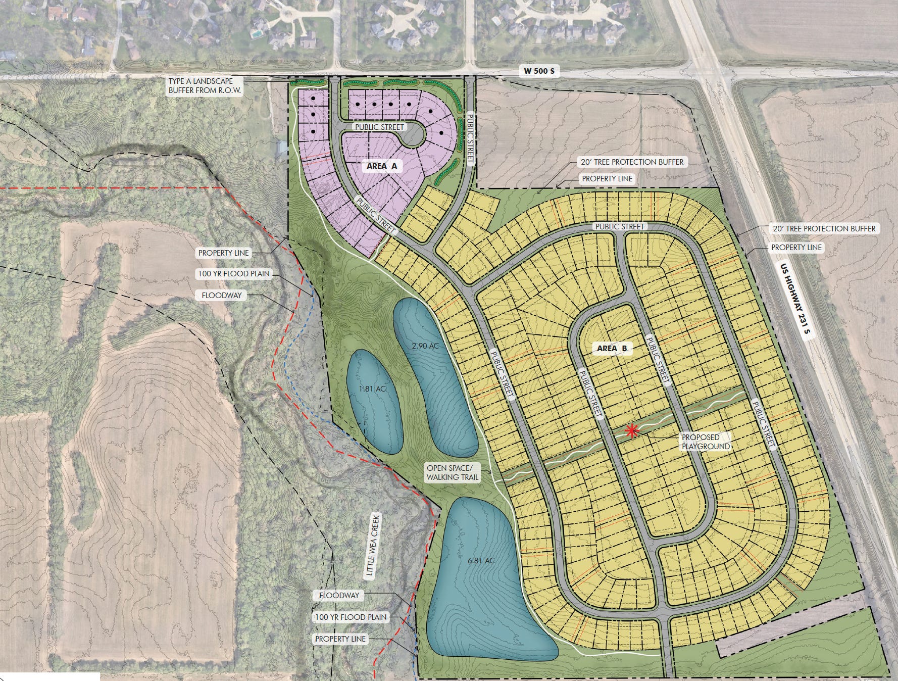 On Friday, Arbor Homes changed it up, again. In a letter to the Area Plan Commission, the company asked to change the request to R1A zoning, which would call for larger lot sizes than in the initial R1B zoning request. The letter also indicated that Arbor Homes would on Wednesday discuss its intent to expand the area with larger lots nearest to County Road 500 South.
