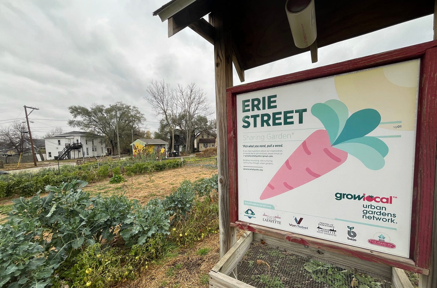Speaking of voting, GrowLocal Urban Gardens Network, a collection of 20 volunteer-run community gardens tucked into Lafayette neighborhoods, is taking part in the annual #SeedMoneyChallenge, a 30-day fundraiser that started Saturday and runs until Dec. 15. Money raised helps provide seeds, plants, fertilizer, supplies, raised beds, garden soil and mulch to all the gardens, maps and signage for sharing garden locations in Spanish and English, along with garden programming, purchase shared tools and build accessible raised beds. GrowLocal partners include churches, K-12 schools, community centers, social service agencies, non-profits and more, sharing produce from 10 sharing gardens and supplying local food pantries and Food Finders Food Bank with any excess. Find the campaign and the 20 gardens in the GrowLocal network at: https://donate.seedmoney.org/12199/growlocal-urban-gardens-network