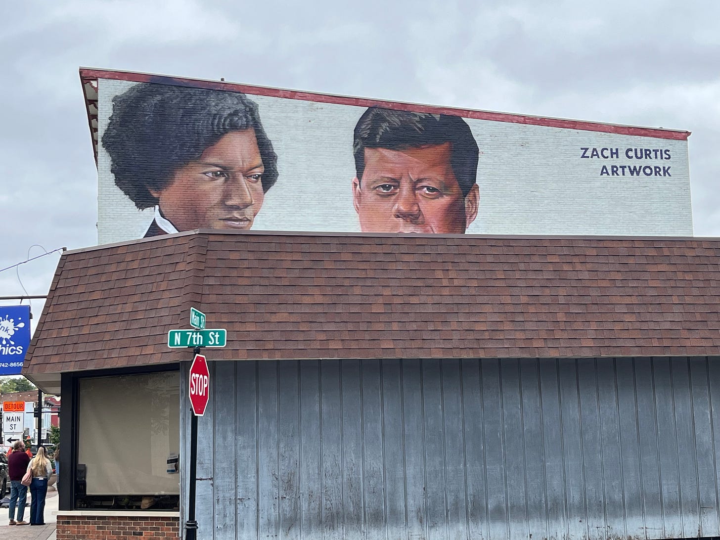 The faces of Frederick Douglass, John F. Kennedy and Abraham Lincoln now peek out from a short alley off Main Street, as the city and the Daughters of the American Revolution on Wednesday dedicated a mural commissioned to mark Lafayette’s 200th anniversary in 2025 and to anticipate the 250th birthday of the United States in 2026.