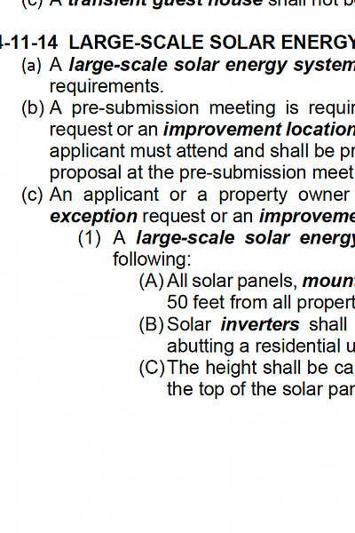 The current ordinance: This is what’s in the current Unified Zoning Ordinance for solar installations.