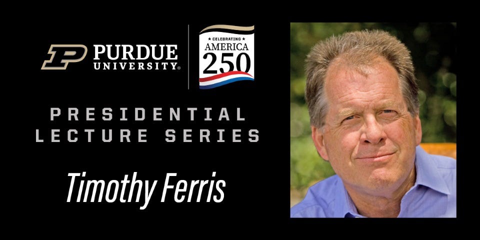 Thanks, again, for support for this edition from Purdue’s Presidential Lecture Series, presenting bestselling science writer and documentarian Timothy Ferris Feb. 26. Reserve your free ticket at https://am.ticketmaster.com/purdue/buy/pls0226.