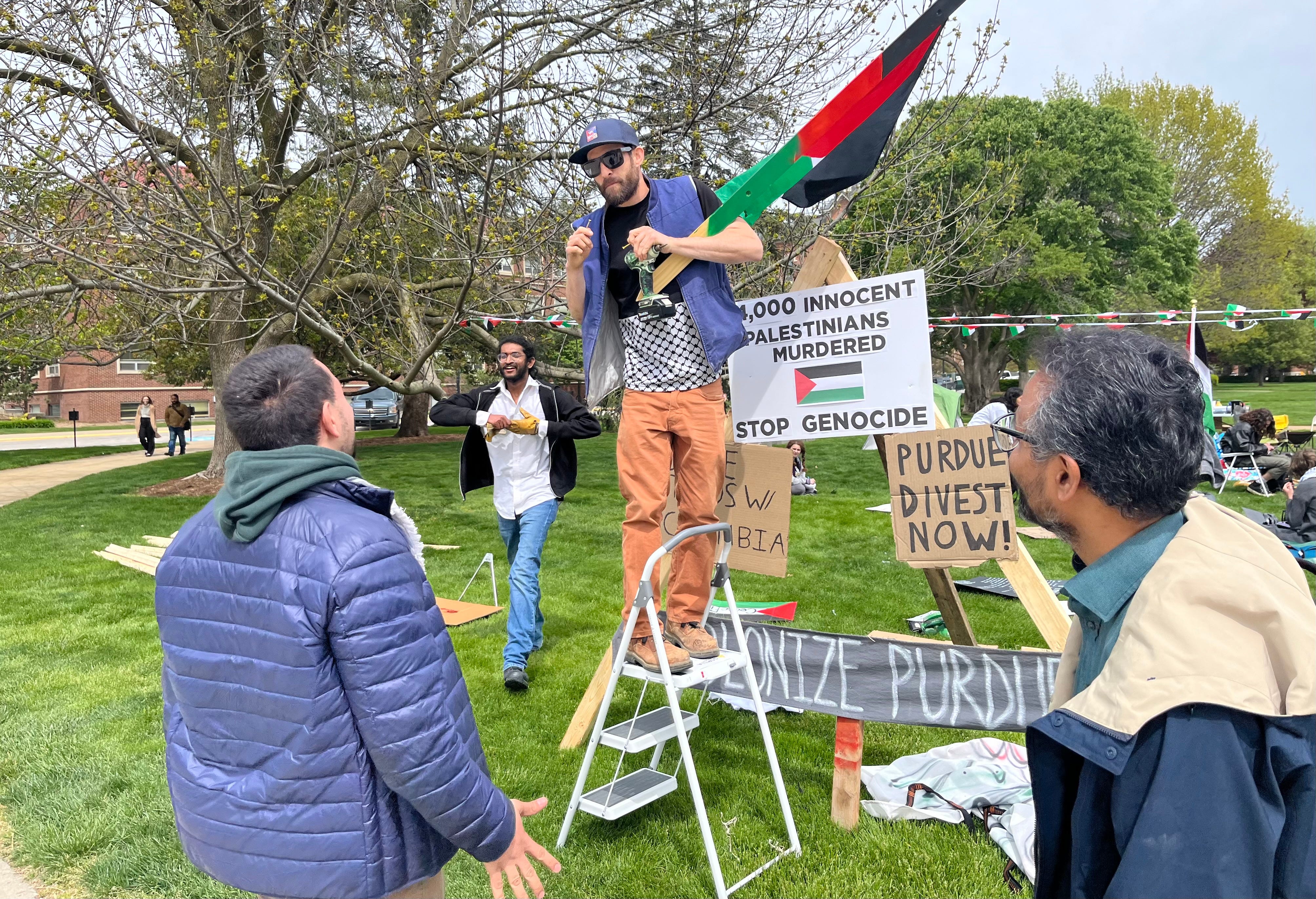 “Tonight, we’re going to see what happens,” Johnny Hazboun, president of Students for Justine in Palestine, said Friday afternoon. “I don’t think the cops are willing to arrest us, and I don’t think Purdue wants a big scandal. … Right now, we’re probably more worried about the rain and whether people want to stay through that.”