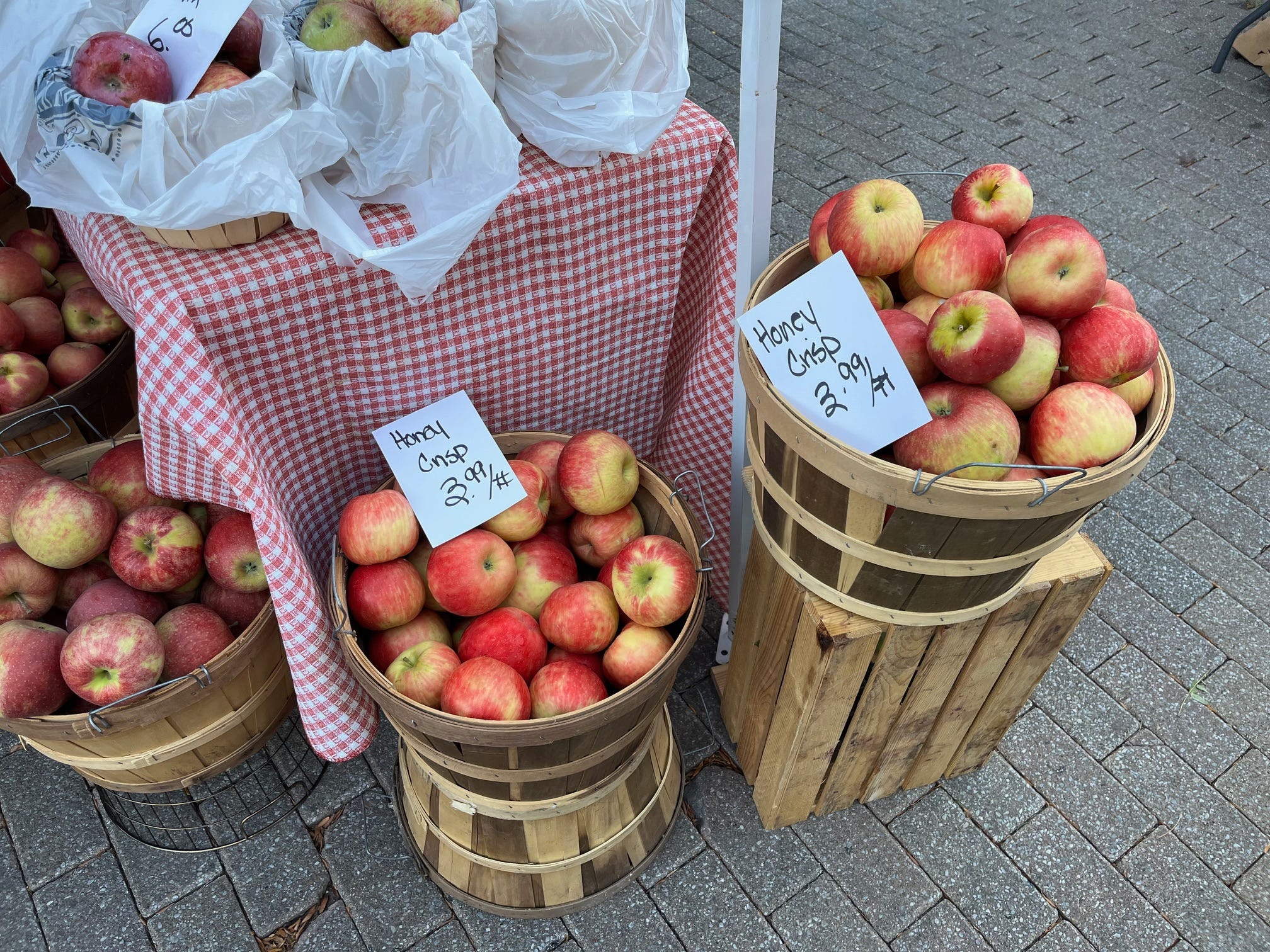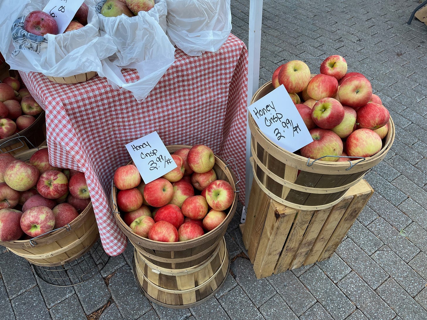 I eat an apple a day (not because I’m trying to fend off the doctor; I just love them) and Honey Crisp has always been my go-to. However, the Honey Crisp at the grocery stores right now are sub-par, in my opinion, but the apples I’ve seen at the farmers market – Honey Crisp and every other variety – are fresh picked and perfect right now. They’ll be available until the end of the month/market season.
