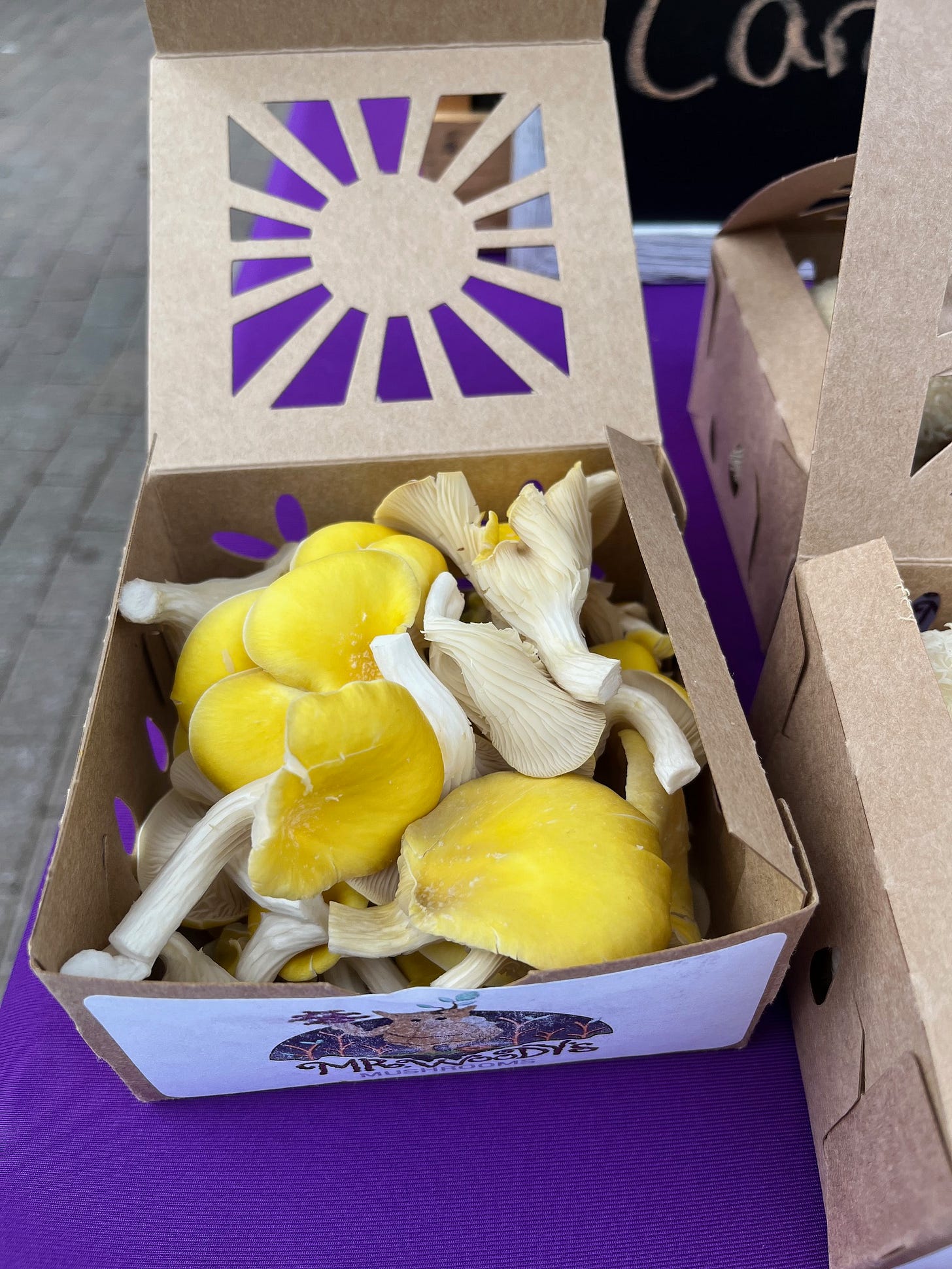At Mr. Woody’s Mushrooms, James Mundell grows and sells up to nine mushroom varieties, with oyster and lion’s mane being the most popular. I always imagined mushrooms being cultivated in dark caves, where they were tended by people wearing coal miners helmets to get the work done. I would be wrong.