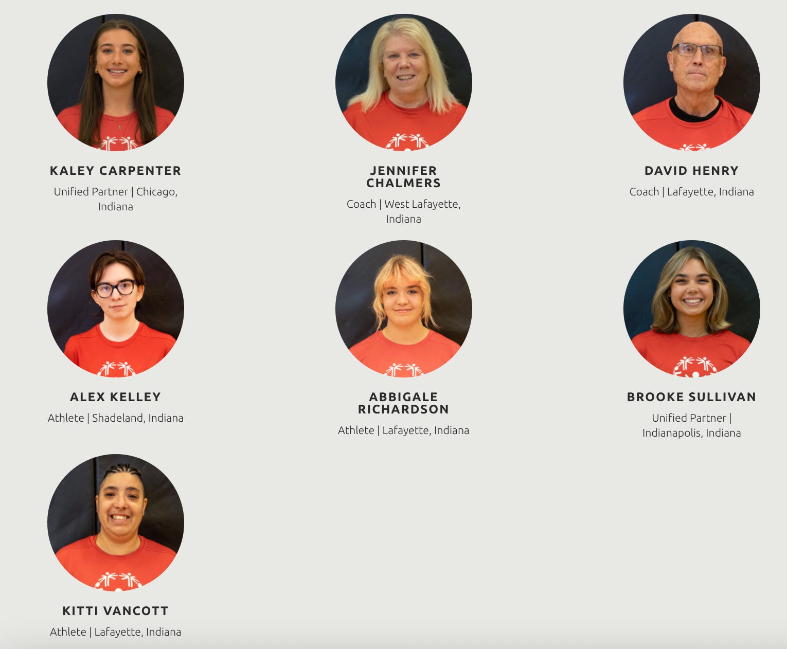 The five-member team, which left for Puerto Rico Wednesday, includes McCutcheon High School students Alex Kelley and Abbi Richardson; Kitti Vancott a Tippecanoe County Special Olympics athlete from Lafayette; and Kaley Carpenter, a Purdue student from Chicago, and Brooke Sullivan, a Purdue student from Indianapolis, who are Unified partners.