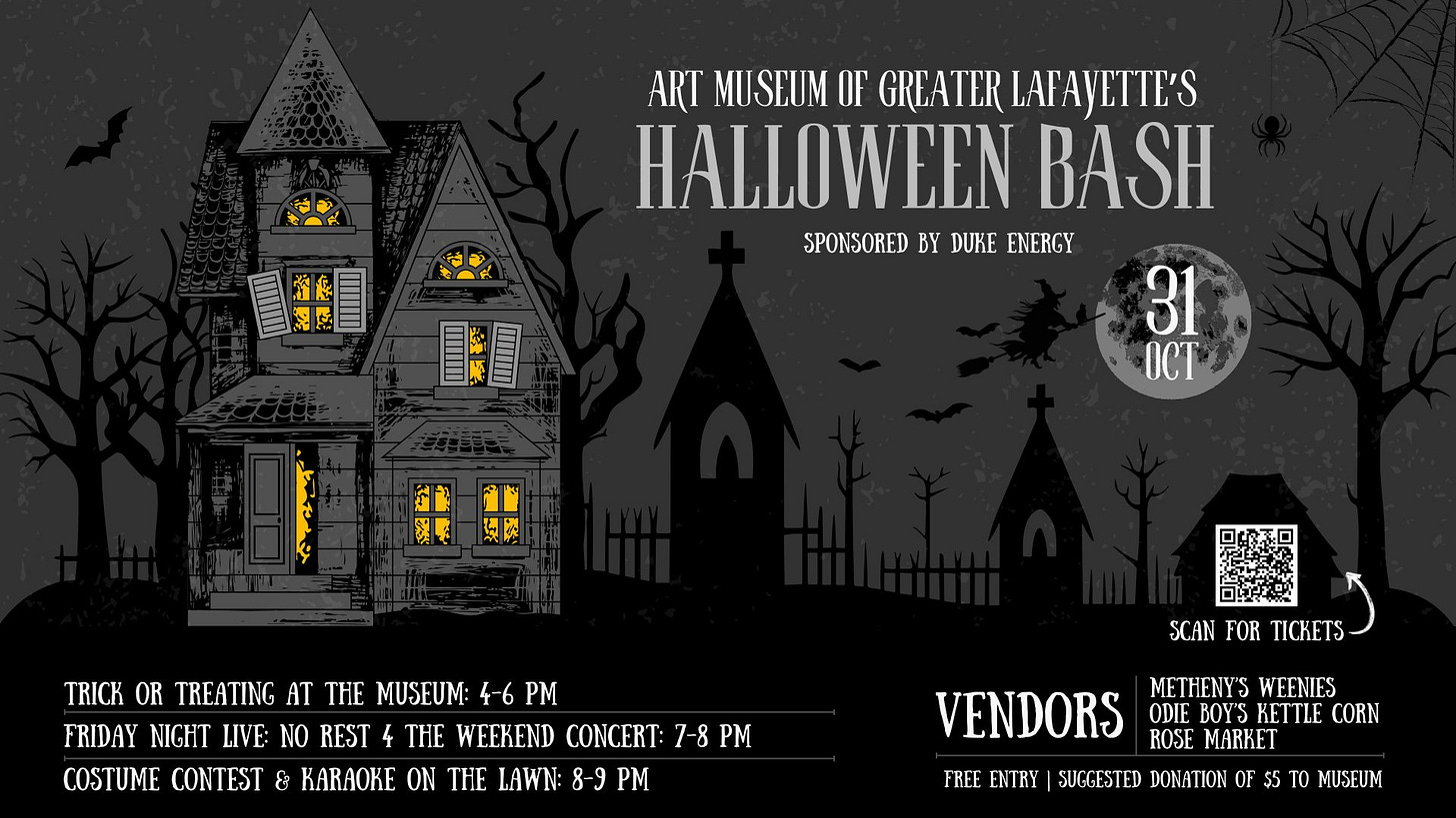 Support for this edition comes from the Art Museum of Greater Lafayette, hosting its Halloween Bash on Oct. 31. The event will feature a costume contest, a concert, art activities and trick-or-treating. For more information and tickets, click here or check the link below.