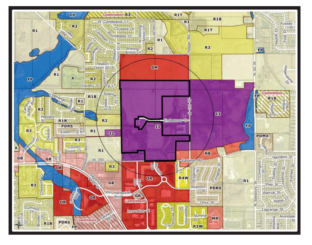 The rezoning request followed a promise in May by Purdue Research Foundation in the hectic hours ahead a West Lafayette City Council vote on a preferred site for the SK hynix semiconductor facility. PRF’s request to rezone the land north of Kalberer Road and west of Yeager Road from industrial to office/research uses essentially softens the intensity of uses on that property.