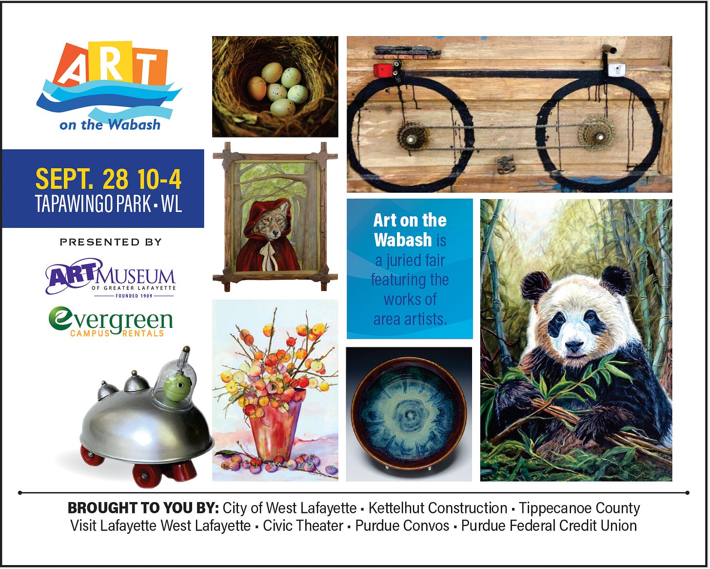 Support for this edition comes from the Art Museum of Greater Lafayette, presenting Art on the Wabash. The juried art fair will be 10 a.m.-4 p.m. Sunday, Sept. 28, at Tapawingo Park in West Lafayette. Admission is free. For more, check out Art on the Wabash here.
