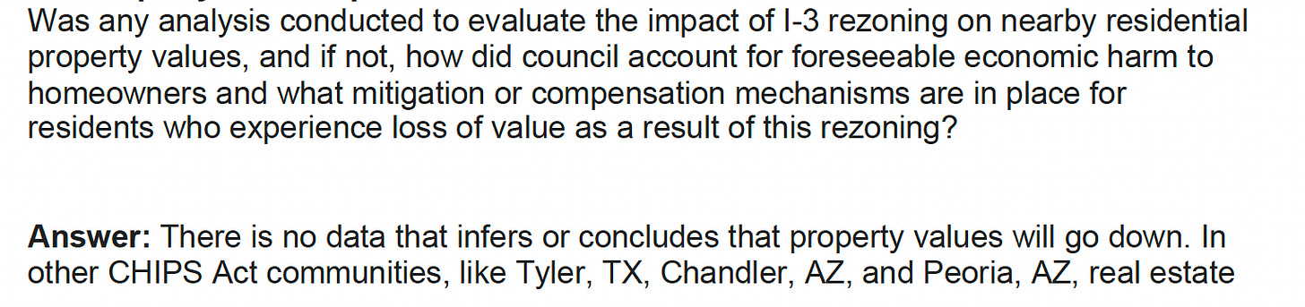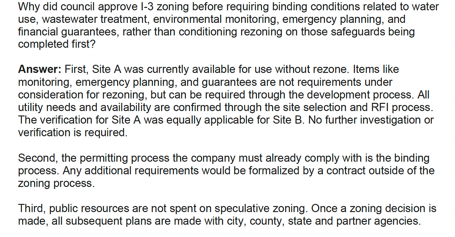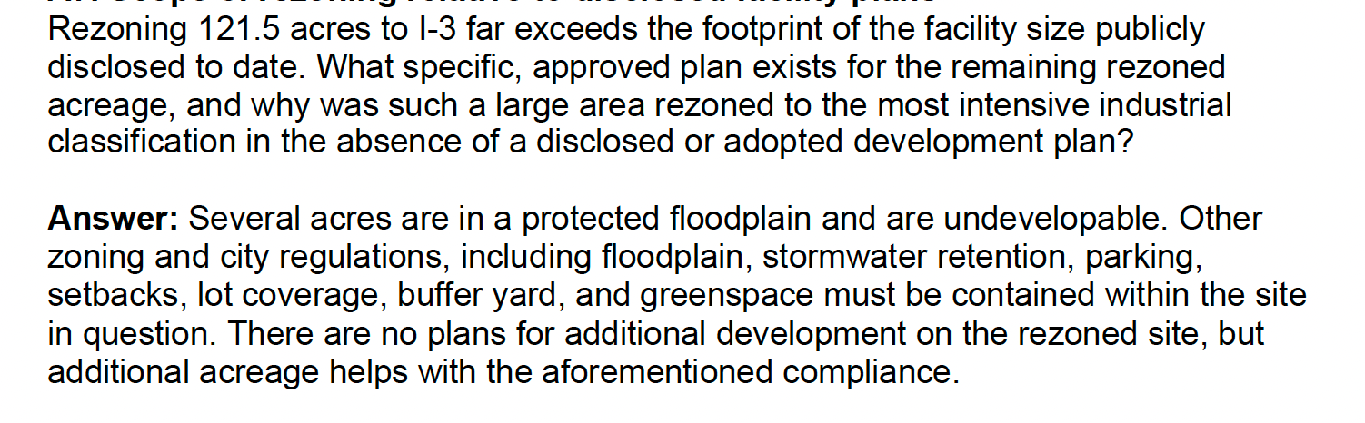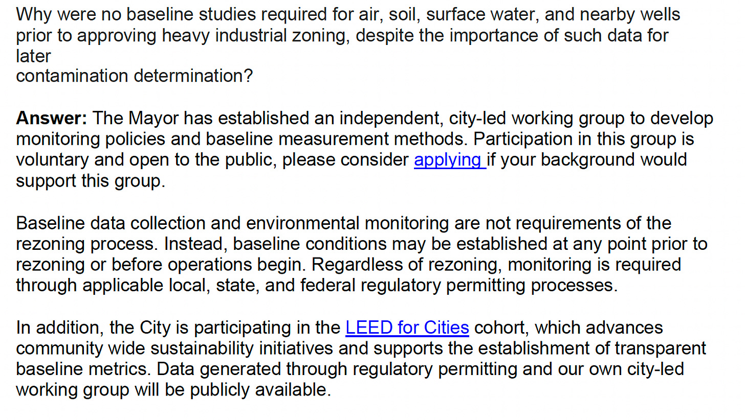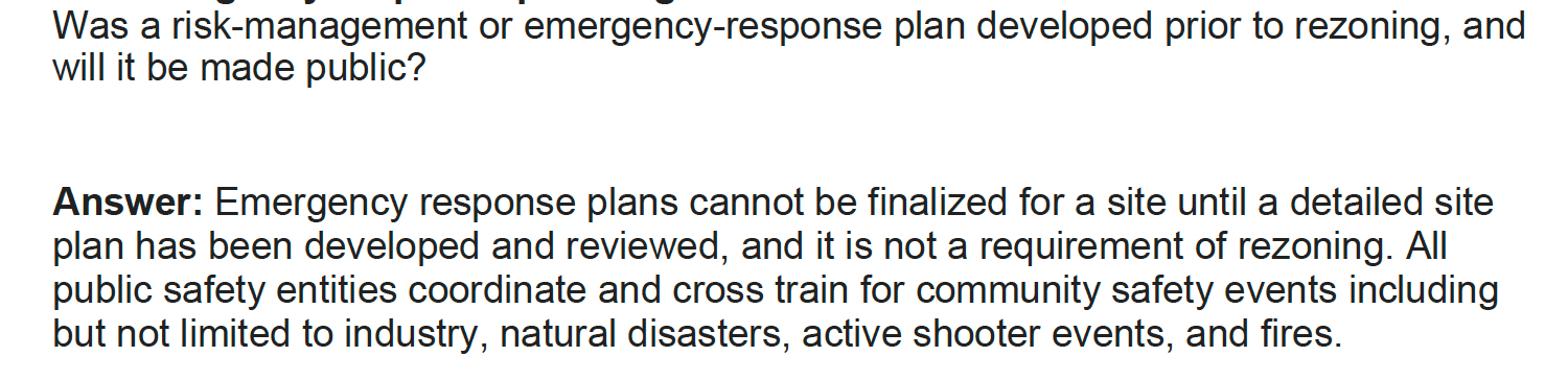 That day, the city posted 19 pages of responses to questions submitted by Stop Heavy Industry members.