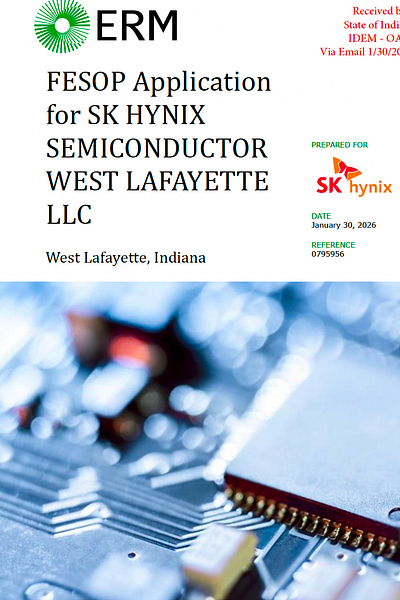 DETAILS IN SK HYNIX’S AIR PERMIT APPLICATION: At the end of January, the company submitted a 170-page application for an operating permit for its air pollution control requirements through the Indiana Department of Environmental Management. The document for what’s called a Federally Enforceable State Operating Permit (FESOP) includes more about the operations, what will be stored on the site and planned emissions at the West Lafayette facility.