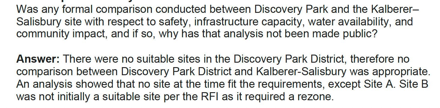 On consideration of alternative locations, including Purdue’s Discovery Park District west of campus: