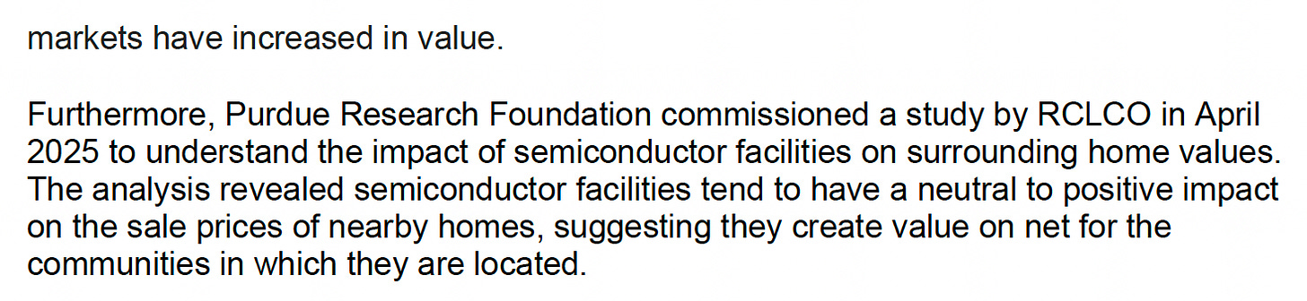 The work also plays a role in the company’s latest defense against the lawsuits, filed by three West Lafayette residents who argue that a West Lafayette City Council’s 6-3 vote after a seven-hour hearing in May 2025 to rezone the land for heavy industrial uses weren’t legal and ignored environmental and other concerns raised by neighbors and local experts.