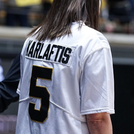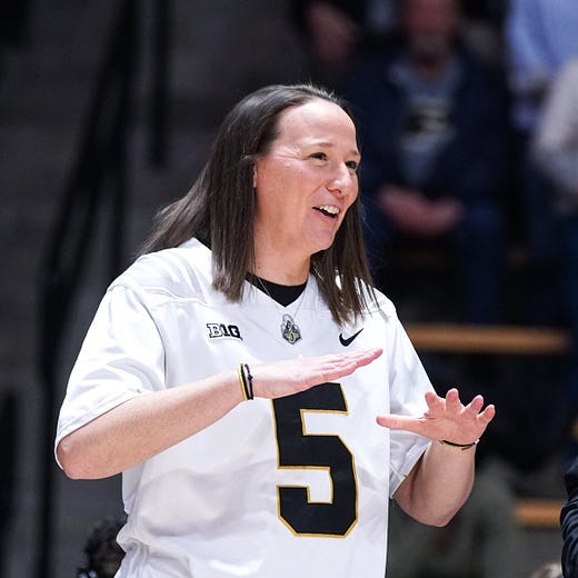 Meanwhile, pregame Sunday, Purdue coach Katie Gearlds was on board with George Karlaftis, wearing Chiefs defensive end’s Boilermaker number during a Super Bowl matchup with Northwestern at Mackey Arena. Call it a winner, with the 17-7 Boilers over the Wildcats, 76-61.