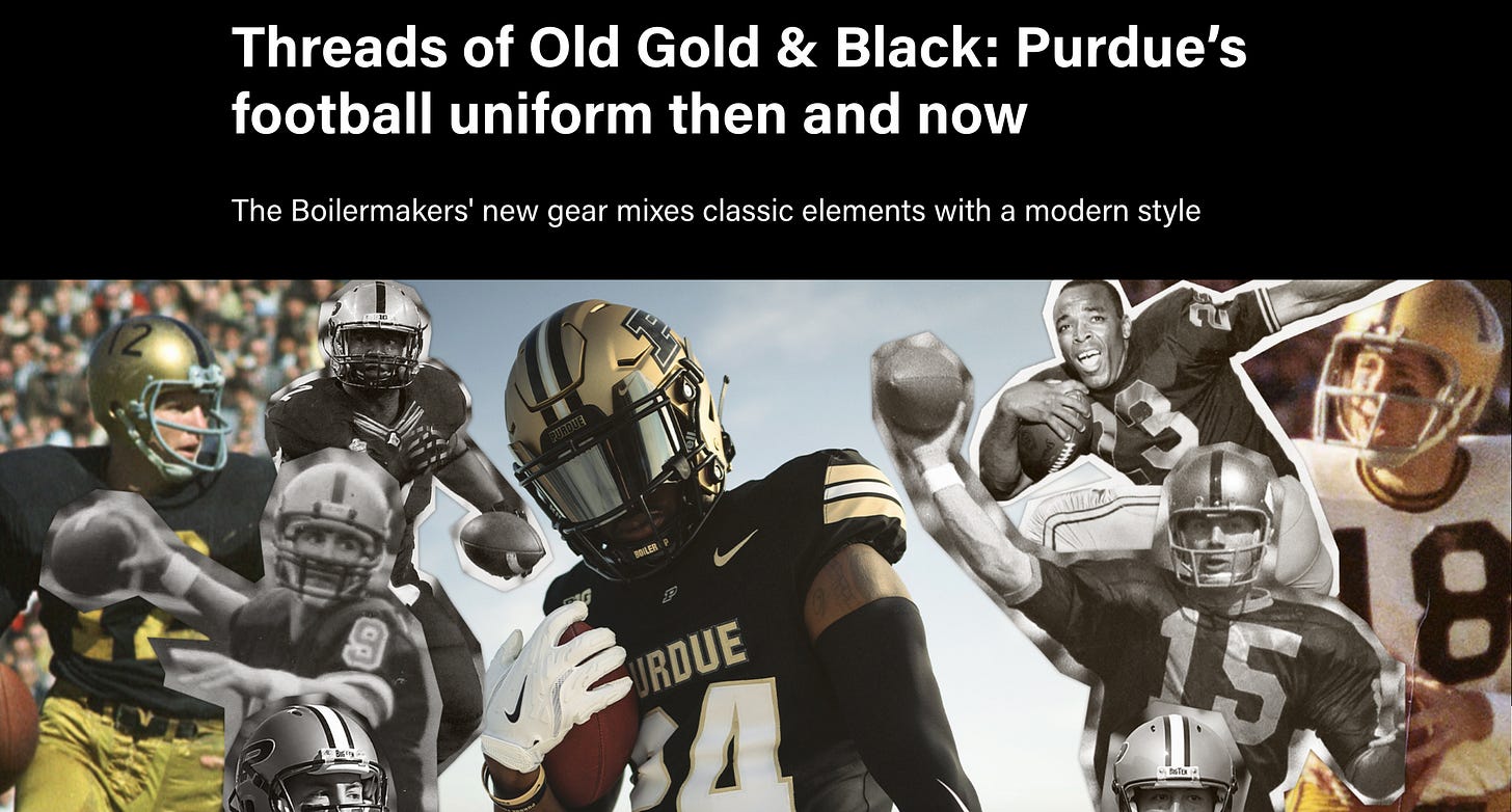 PURDUE FOOTBALL THREADS: Speaking of the first game of the Purdue season – kickoff against Indiana State is noon Saturday – Tom Dienhart of goldandblack.com had this look at the Boilers’ redesigned uniforms, which put plenty of throwback elements into the mix. This is a great history, if you’re into that sort of thing (which I totally am): “Threads of Old Gold & Black: Purdue’s football uniform then and now.”