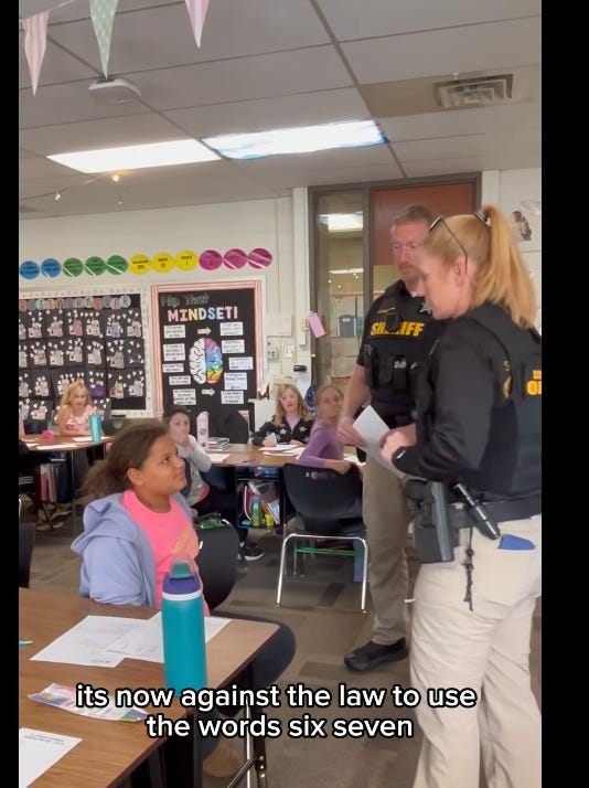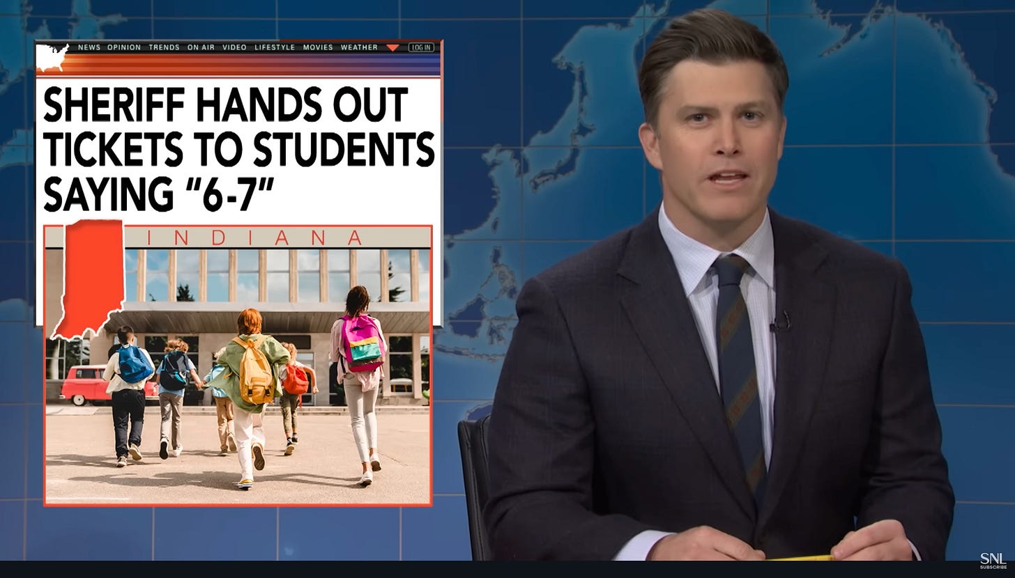Saturday Night Live’s “Weekend Update” last night picked up on a schtick Tippecanoe County Sheriff’s Office’s school resource officers Elizabeth Frazier and Steven Stonerock pulled off last week when they went to Hershey Elementary to hand out tickets to students who violated a new – and totally fake – ordinance that made it illegal to say “six-seven” outside the confines of a math problem or referring to someone’s age. (Enhanced charges weren’t mentioned for any kid doing the juggling hand motion that goes with the all-consuming reference to all things mid.)