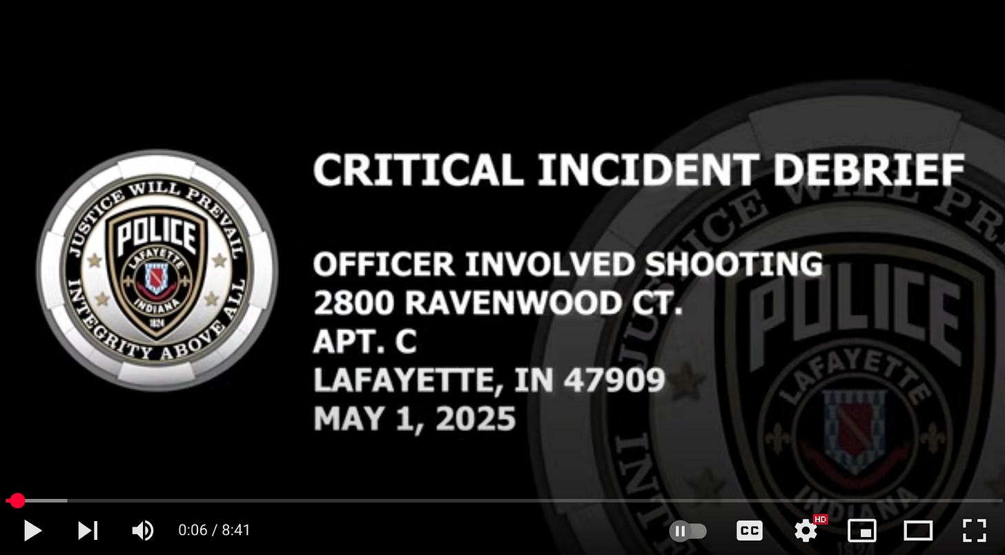 The Lafayette Police Department on Friday released a video recounting its investigation into the May 1 fatal shooting of a Lafayette man by a police officer called to a standby detail at an apartment as the man’s wife and a child attempted to leave during a domestic situation.
