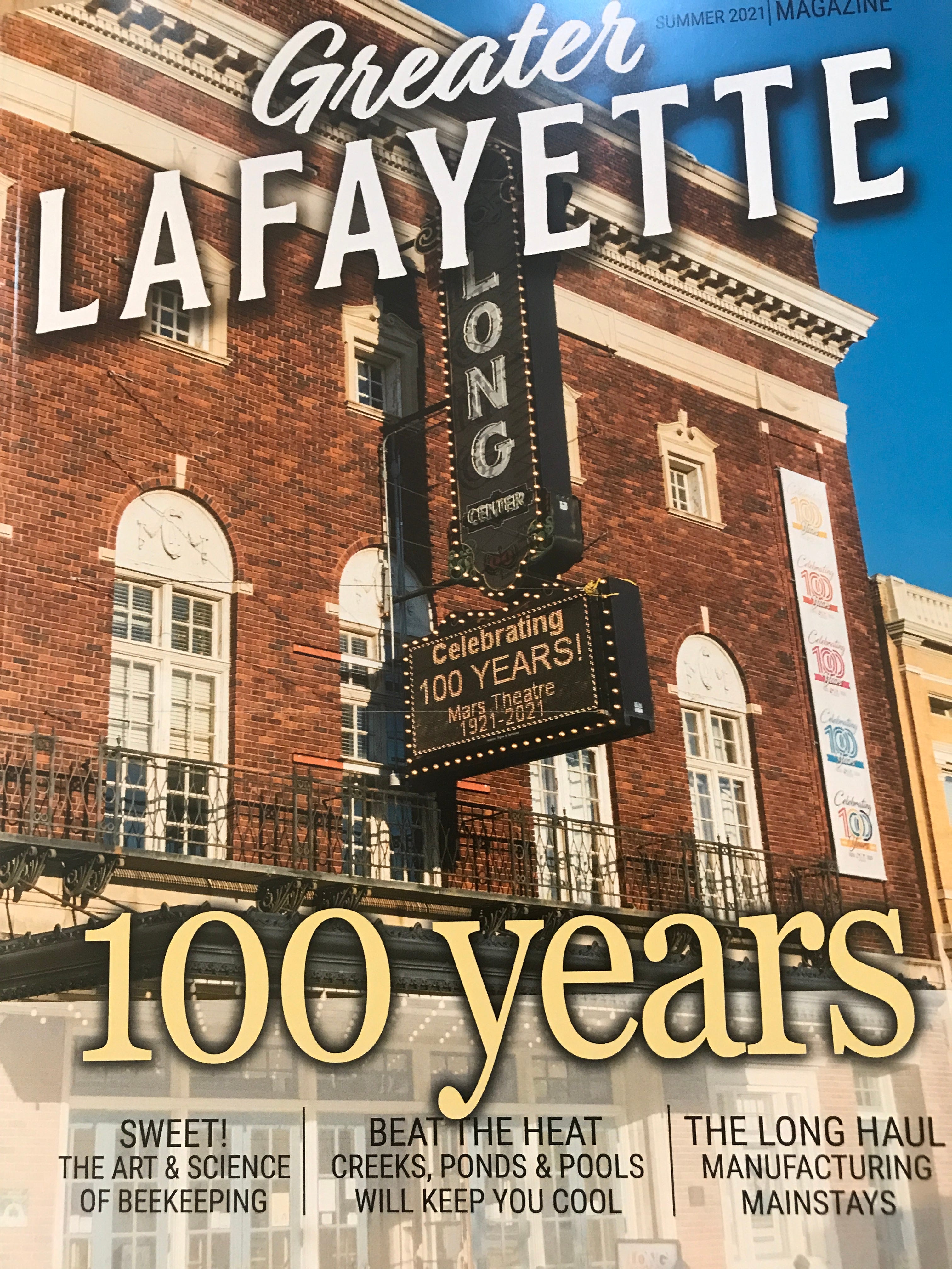 OUT NOW, GREATER LAFAYETTE MAGAZINE: This quarter’s Greater Lafayette Magazine is out this week, with features on the Long Center for Performing Arts and the 100th anniversary of what once was the Mars Theatre, manufacturing mainstays in the community and the growing beekeeping scene in the community. For details and to find a copy, here’s your link.