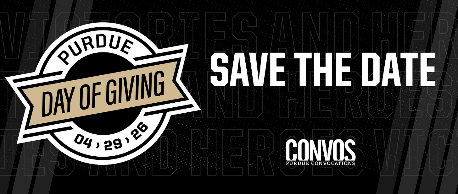 Thanks, again, for support for from Purdue Convocations, who needs your participation on Wednesday, April 29, for Purdue Day of Giving. Visit convocation.org/pdog.