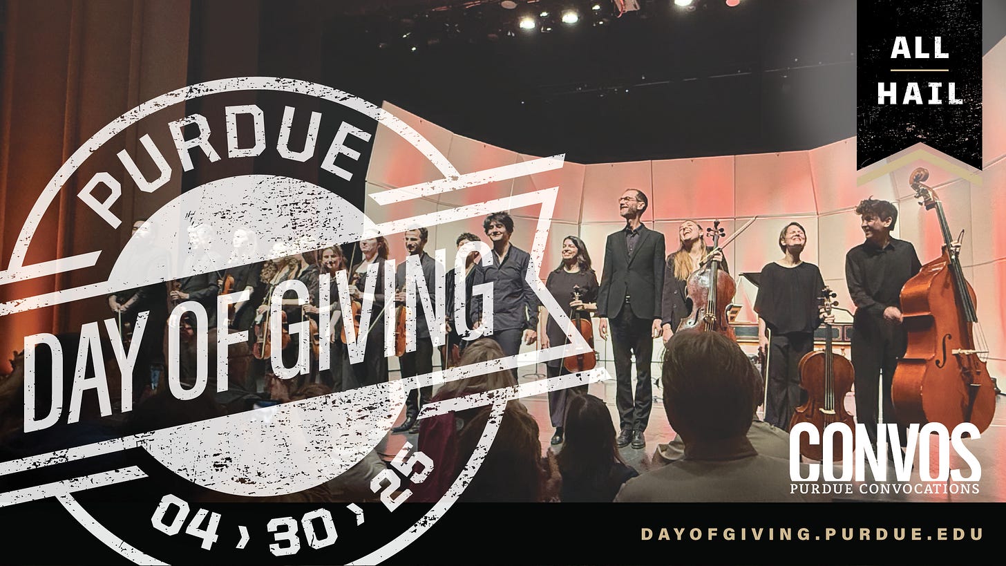 Support for this edition comes from Purdue Convocations, reminding your that this Wednesday, April 30, is Purdue Day of Giving.
