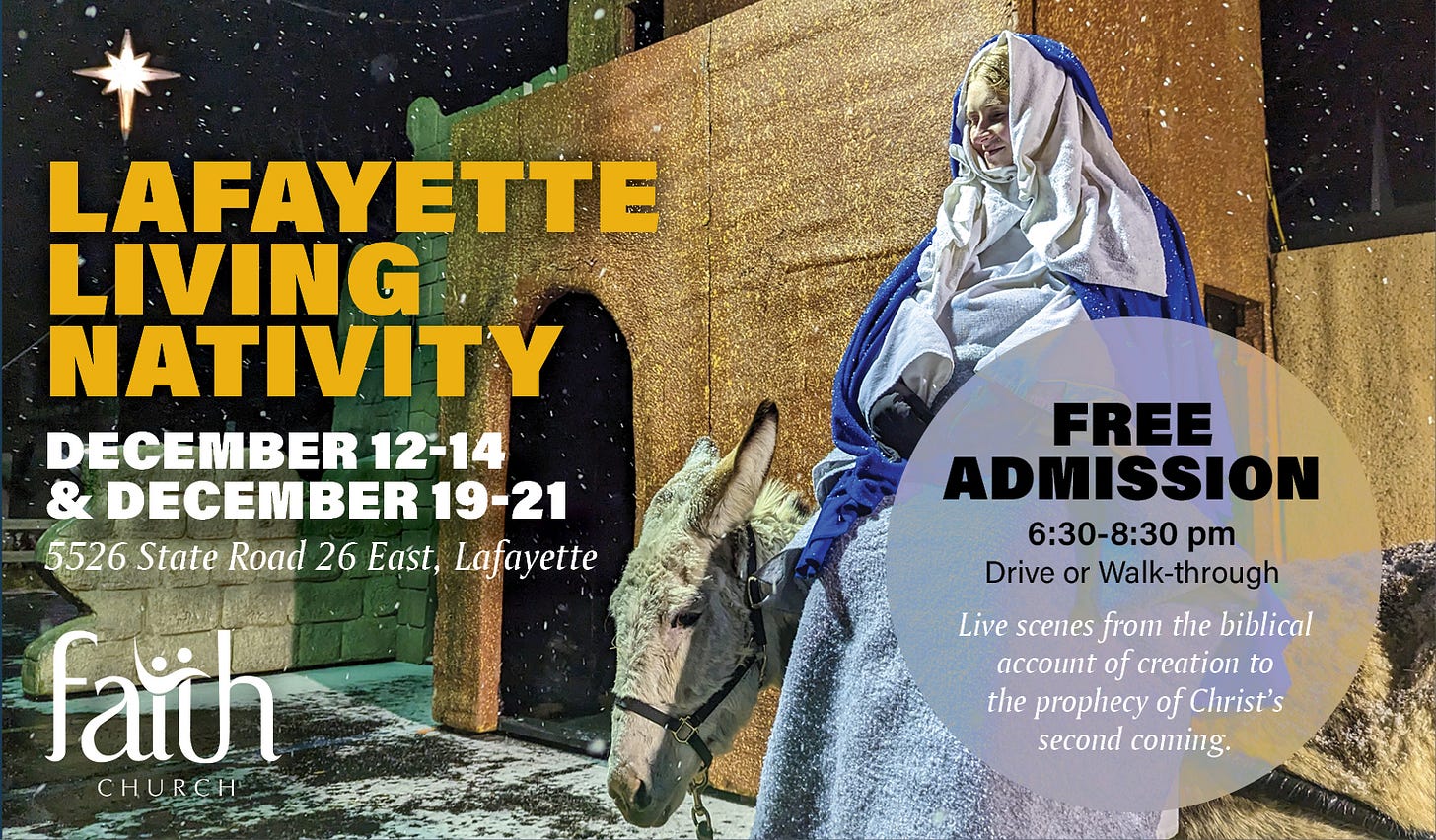 Thanks, again, for support from Faith Church, presenting Lafayette Living Nativity Dec. 12-14 and Dec. 19-21. Get details here.