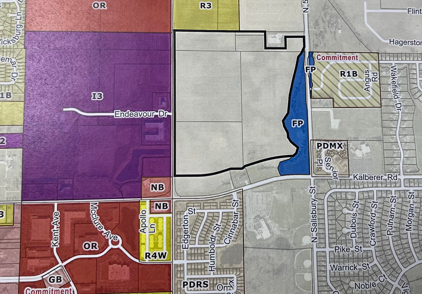 The first is to rezone 13.1 acres along Kalberer, on either side of West Lafayette Fire Station No. 3 and stretching from Salisbury to Yeager, from a single-family zoning to neighborhood business.