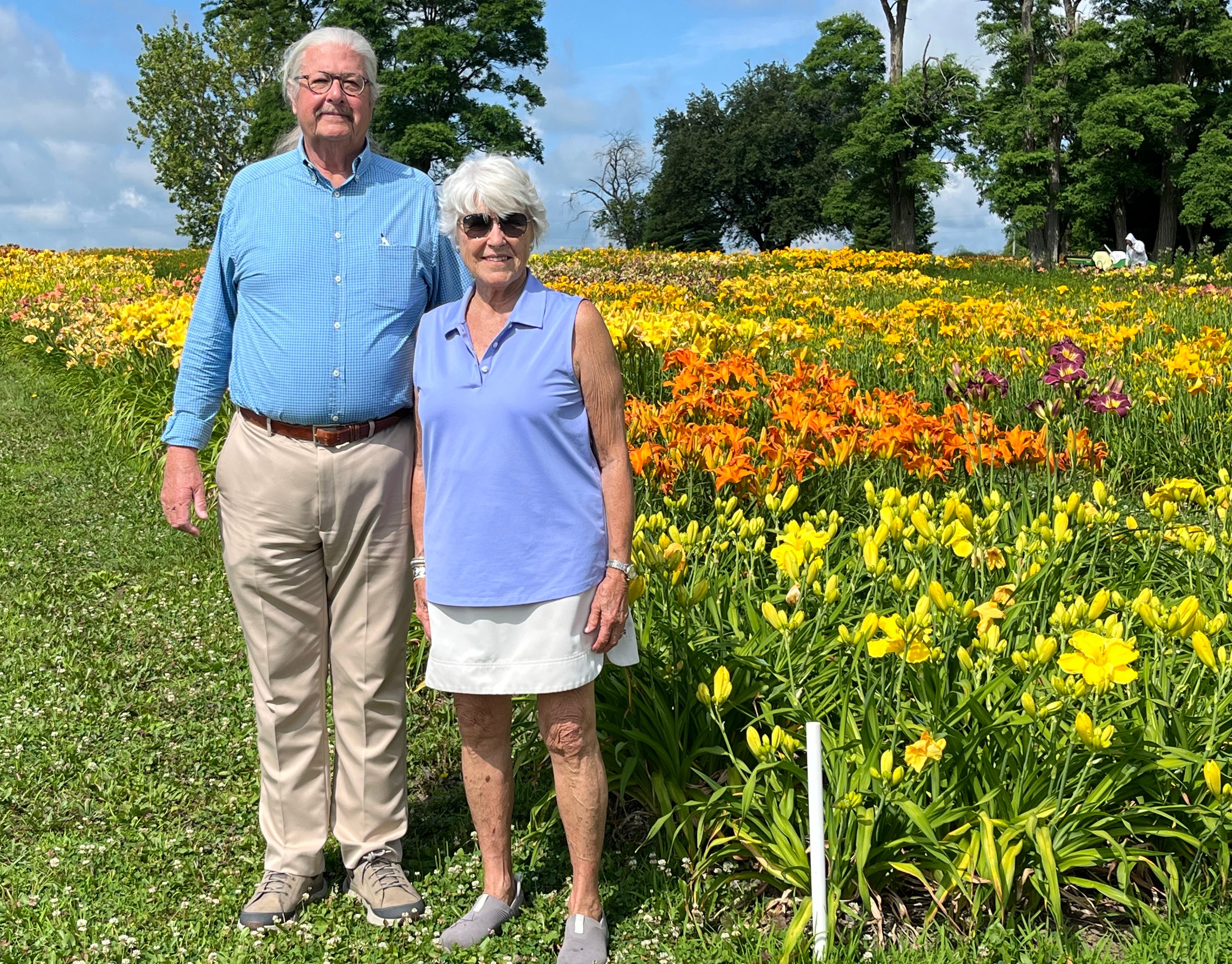It’s 9:30 a.m. and the daylilies on Gregg and Linda Sutter’s farm are already putting on a show, being all bright and bold and beautiful.