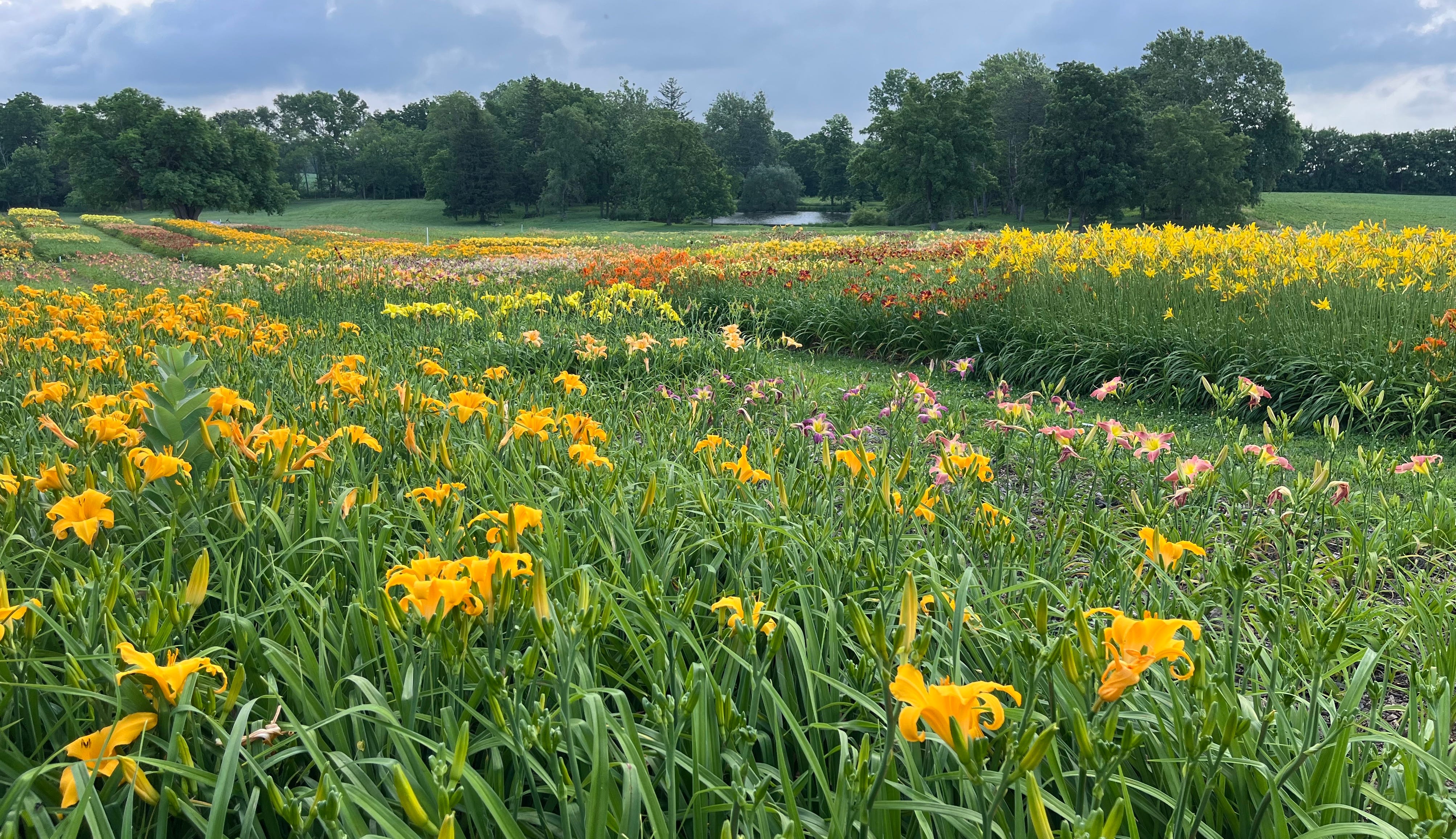 Gregg Sutter estimates that he has more than 1,500 daylily varieties on his farm, with names as colorful as the plants: Persian Ruby, Primal Scream, Russian Easter, Yazoo Jim Terry, Ruby Spider, Lusty Leland and Dancing with Giraffes. And the Sutters pretty much know where each of those varieties is growing in the expanse of nonstop color.